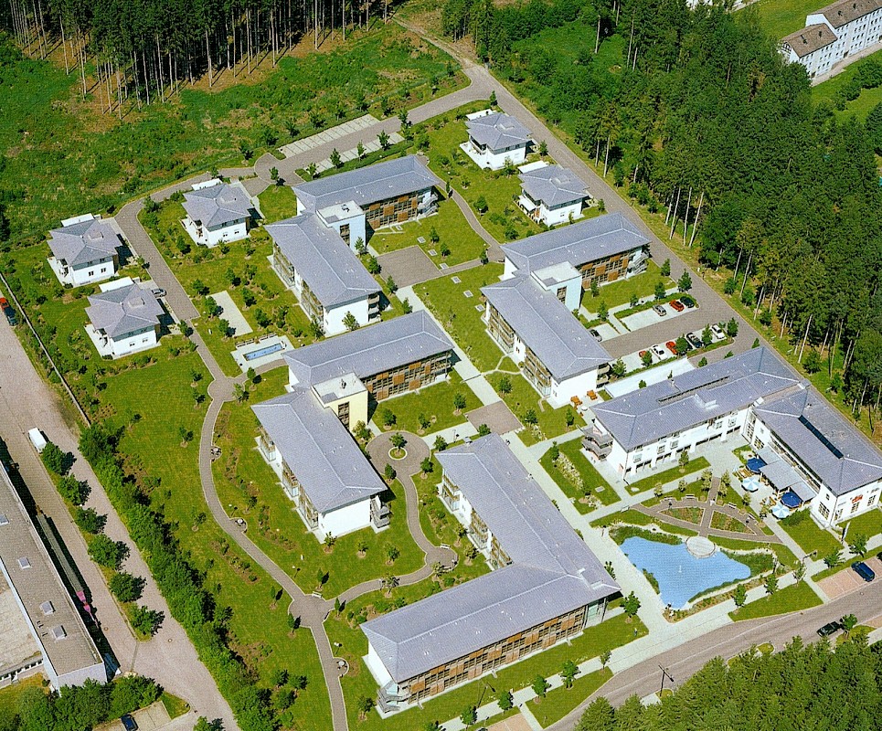 Die gesamte Anlage besteht aus vier Mehrfamilienhäusern, fünf Zweifamilienhäusern und einem Gebäude mit Gastronomie, Hotel, Pflegeheim, Verwaltungs- und Ladenbereichen und öffnet sich über einen zentralen Platz zum Straßenraum hin. Um diesen Platz herum sind die Gaststätte mit Hotel, der Pflegebereich, die Verwaltungs- und Ladenflächen und ein Mehrfamilienhaus angeordnet.